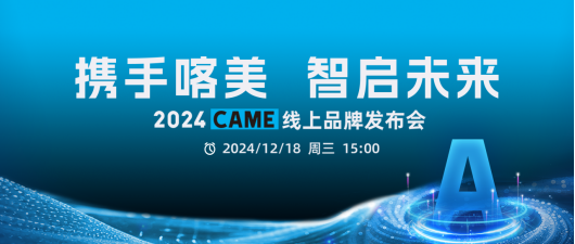 12月18日,CAME成功舉辦以“攜手喀美,智啟未來”為主題的2024線上品牌發(fā)布會。此次發(fā)布會展示了意大利CAME喀美在自動化領(lǐng)域的卓越實力,并深化了與潛在經(jīng)銷商的合作,為其在中國市場的新征程拉開了序幕。