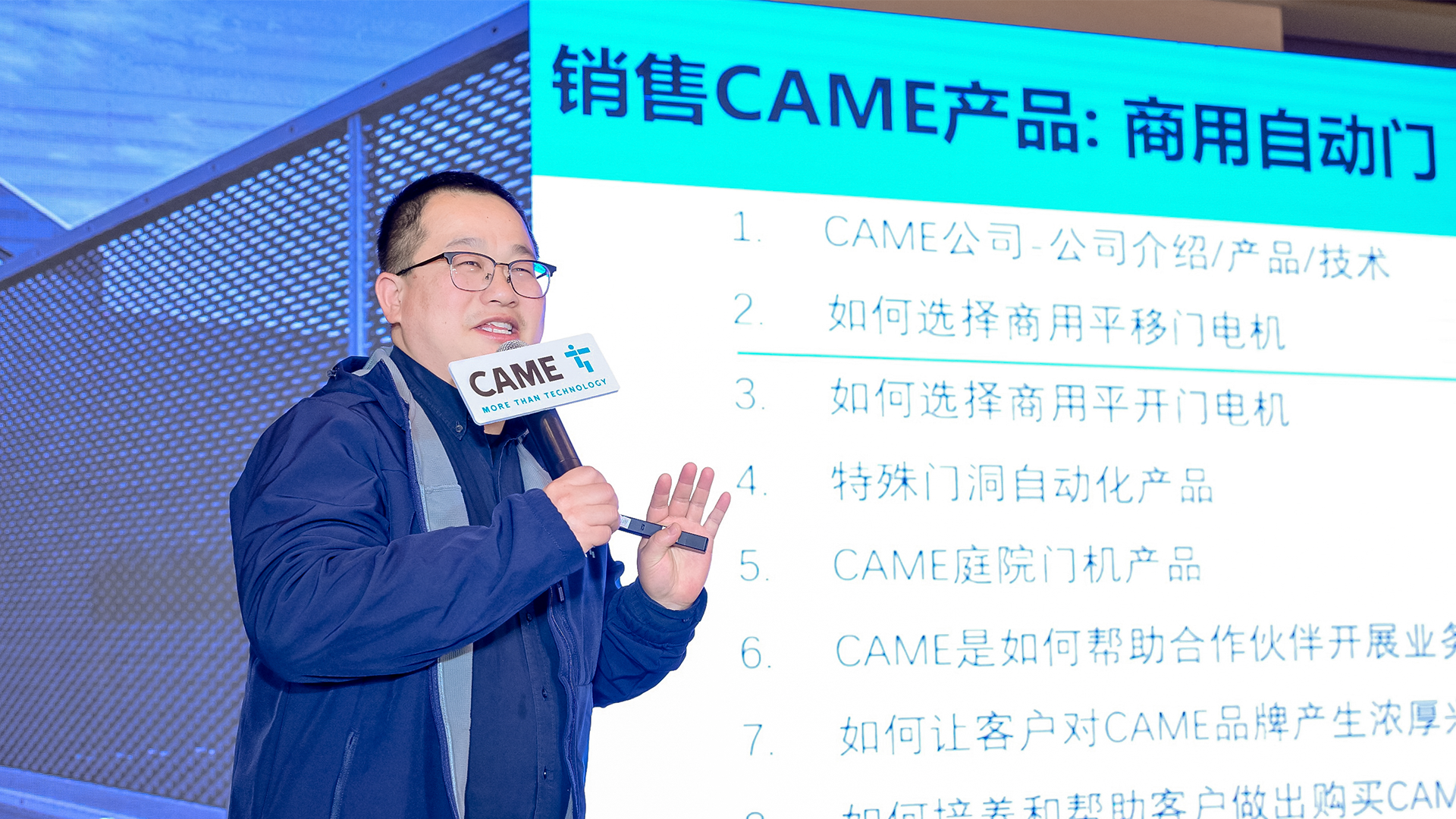 全天議程的核心板塊集中于產(chǎn)品特色選型與案例拆解??γ蕾Y深技術(shù)專家滕志明就CAME自動(dòng)平移門、自動(dòng)平開門及庭院門機(jī)等核心產(chǎn)品線,進(jìn)行了系統(tǒng)性的選型指導(dǎo)與應(yīng)用解析。講解不僅涵蓋技術(shù)參數(shù),更結(jié)合了典型的實(shí)際案例分享,將產(chǎn)品特性置于具體的項(xiàng)目場景中剖析,幫助伙伴深入理解如何為客戶匹配最優(yōu)解決方案。